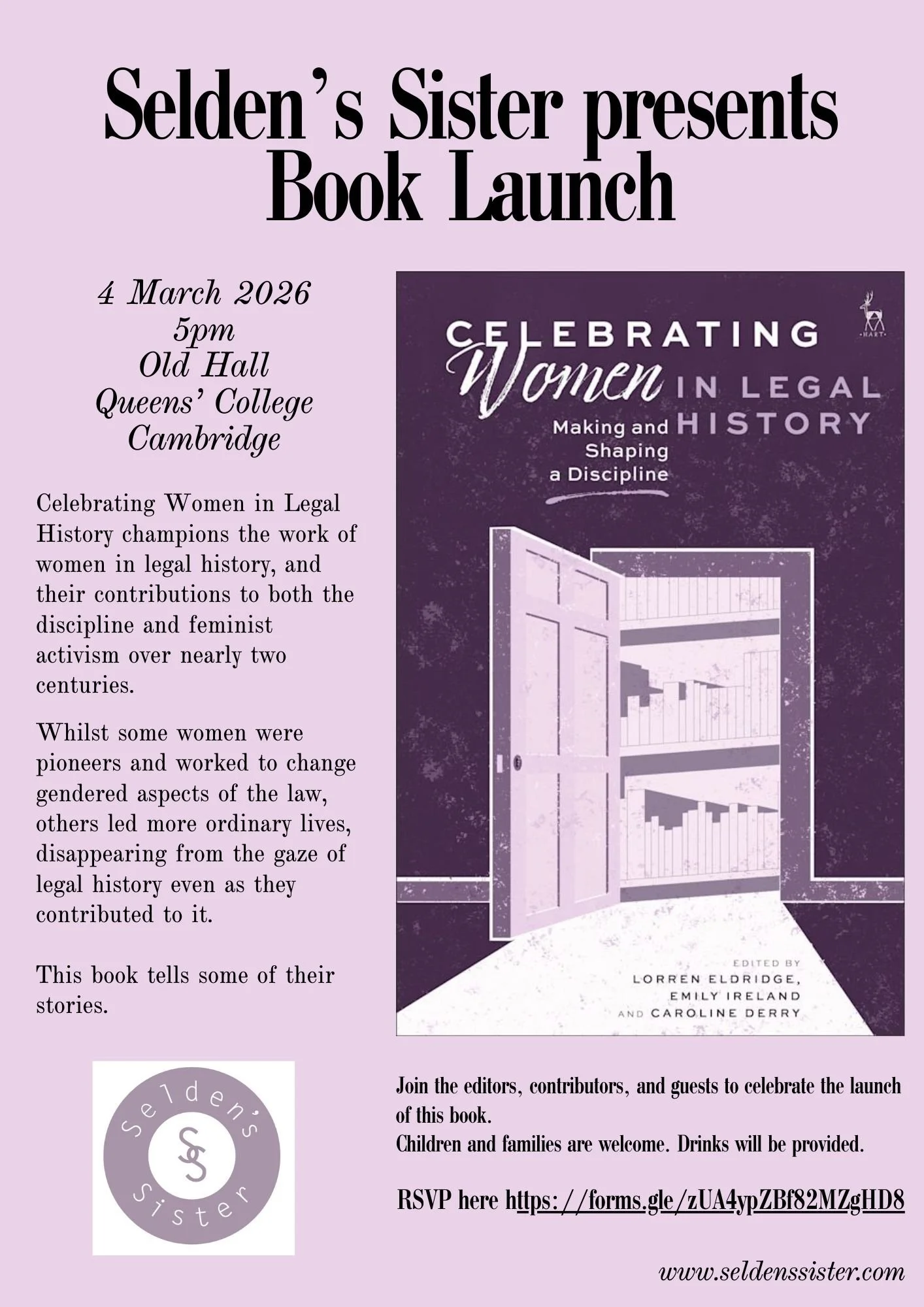 Selden’s Sister presents: the book launch of Celebrating Women in Legal History